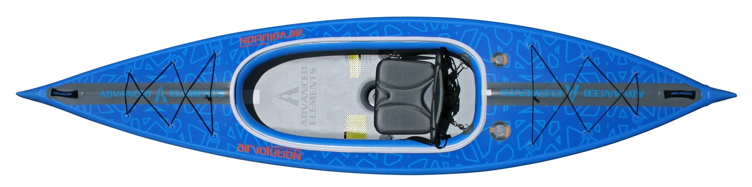 The Airvolution™ by Advanced Elements is a rigid high-pressure drop-stitch kayak unlike any other! The Airvolution™ is a streamlined high-performance kayak with paddling performance that rivals that of a hard-shell kayak. Featuring an open deck design for ease of entry, the Airvolution™ uses extremely durable materials and features many high-end components such as a high-back comfortable seat, bungee deck lacing for gear stowage, and heavy-duty grab handles. Simply unfold, inflate and you’re ready for your next adventure!