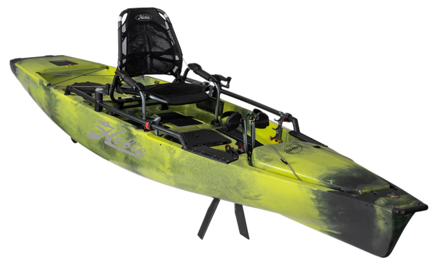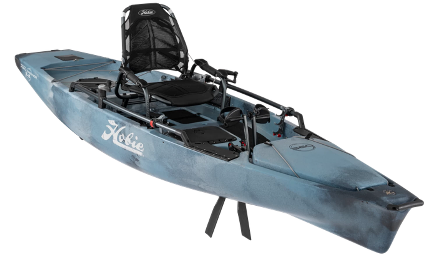 Everything elite anglers are looking for in a fishing kayak – total control, power, stability, performance, stealth, comfort and feature rich. It’s wide, rock-solid standing platform comes decked out with noise reducing EVA traction pads. Explore wherever you want to go with the all-new Kick-Up fins that automatically retract upon impact. Ultra-comfortable, adjustable Vantage ST seat, dual steering, Guardian Retractable Transducer Shield and an extra-wide beam allows for long days on the water. Mount your rod holders and electronics on the 12-sided Hobie H-Rail bars.