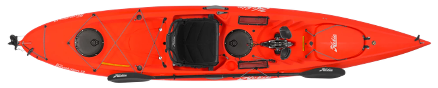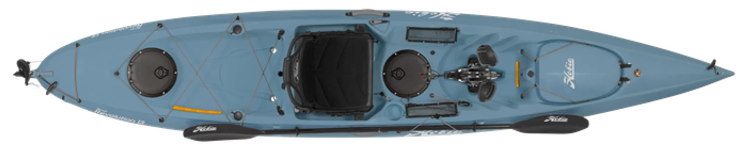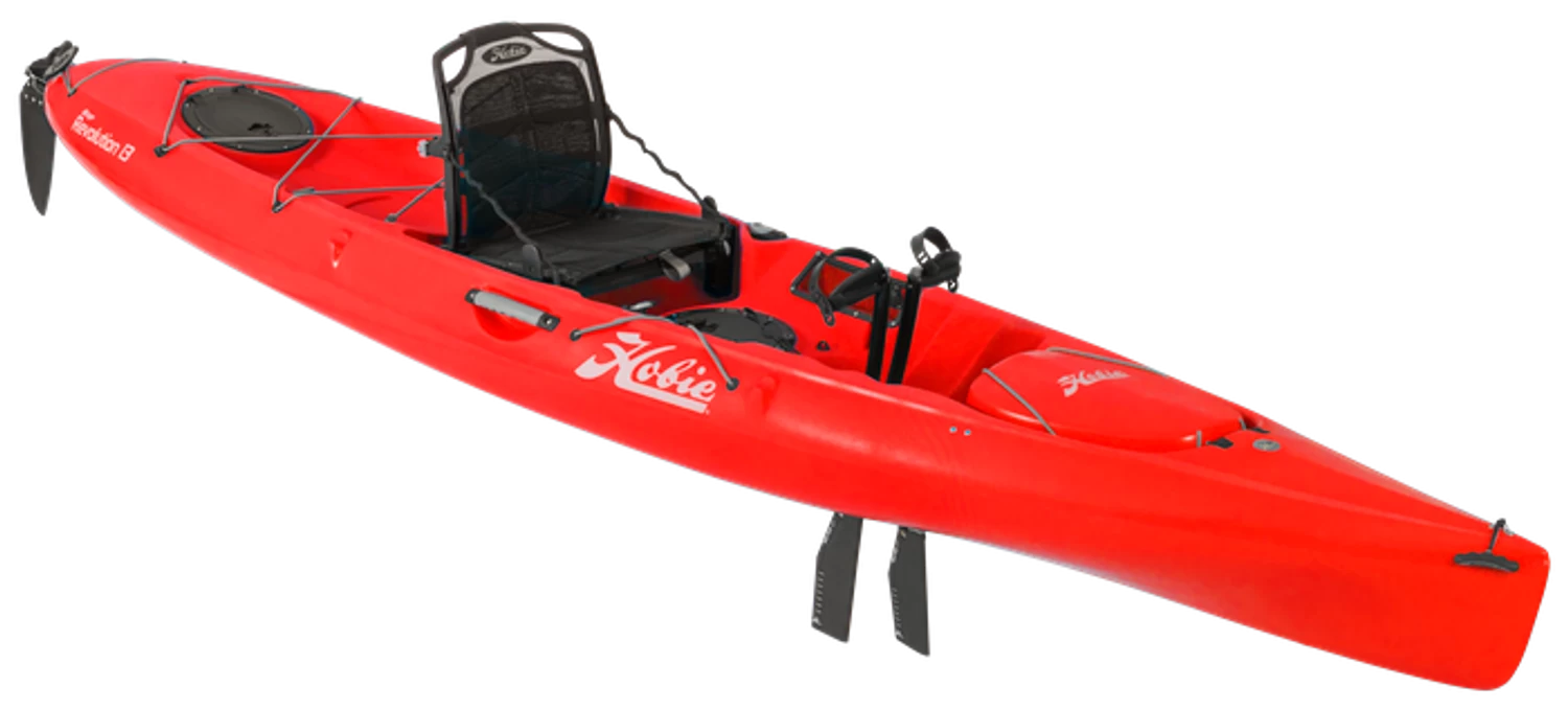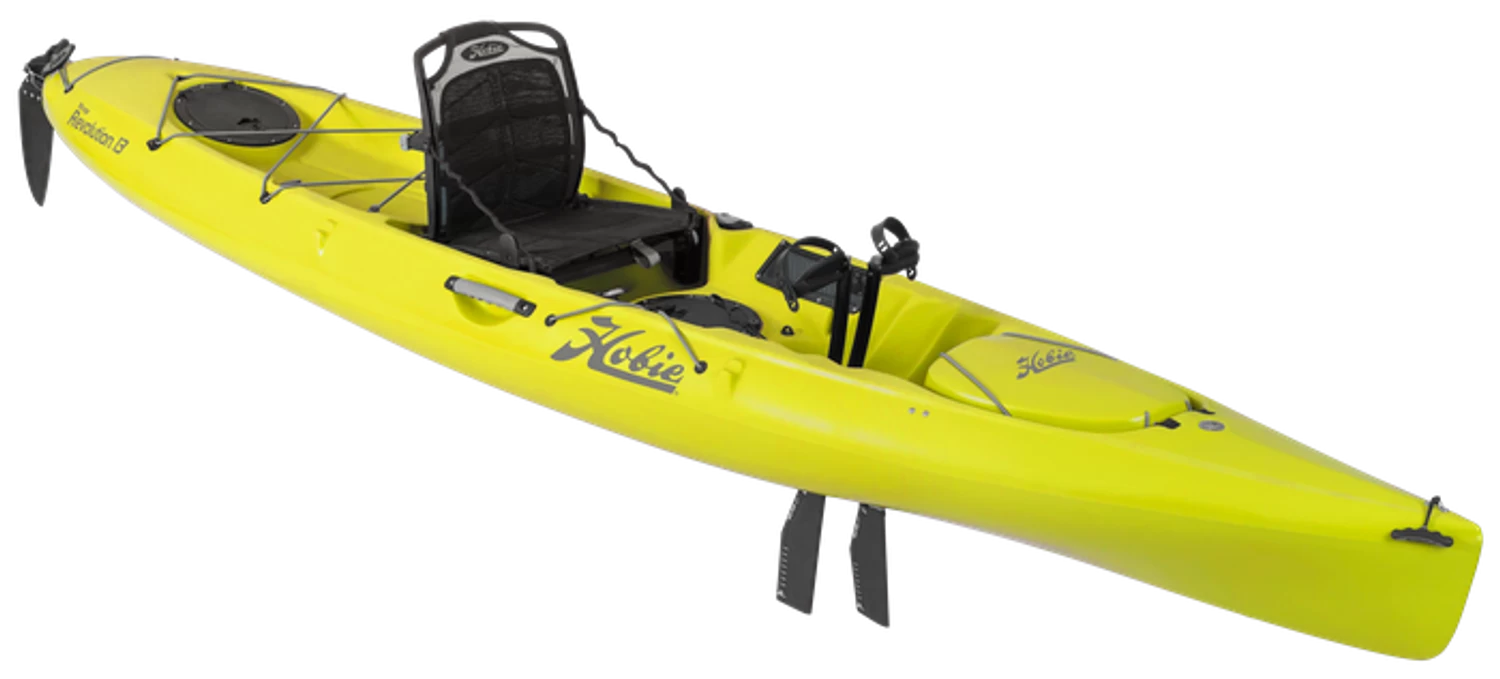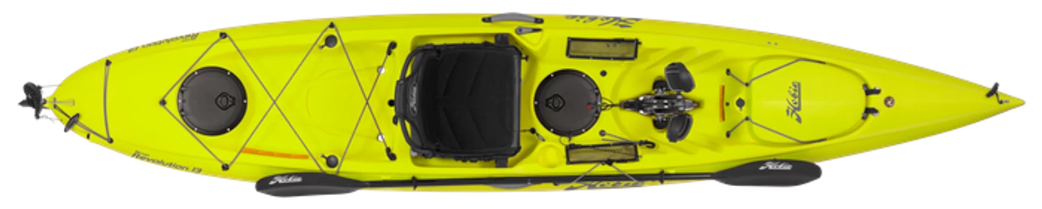 Catchy too, with dual rod holders and generous tackle storage. Experience the MirageDrive like never before with forward and reverse power + new Kick-Up Fin Technology. If you crave a change of pace from hands-free MirageDrive glide and pick up the paddle, the “Revo 13” still makes tracks. Whether fishing or exploring, the Revolution 13 loves a twisty, challenging course. The lightweight, rotomolded hull sings when under optional Sail kit power.