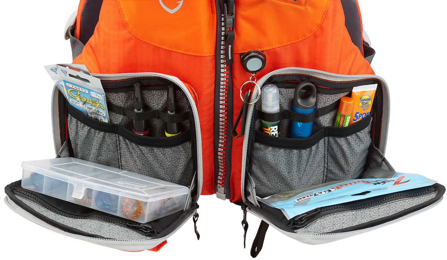 - A fifth, tool holder pocket offers quick access to pliers, line cutters or other fishing gadgets and accessories.