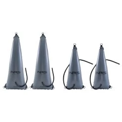 Long and narrow flotation bags fit on either side of a kayak’s center support pillar. The full set includes two bow bags and two stern bags. Bow bags fit forward of the foot area of most kayaks longer than 8′.