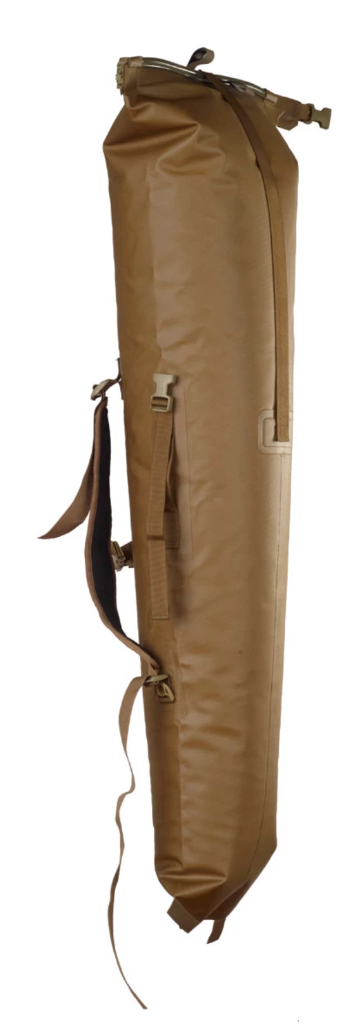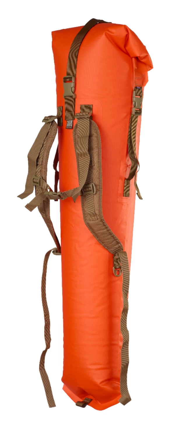Built for higher caliber hunting and varmint rifles with larger optics, the Rangeland Long Gun Backpack will give you peace of mind on your next hunting trip. This waterproof bag will fit your rifle as well as other accessories while keeping them bone dry. Unrolled, the bag can hold guns up to 50″ long; rolled up to 46″.
