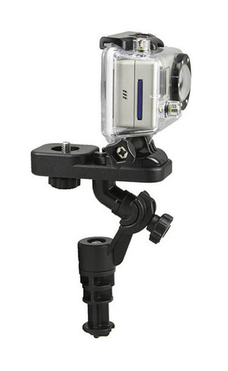 - Locks down a standard camera or sports cam without needing a special adaptor