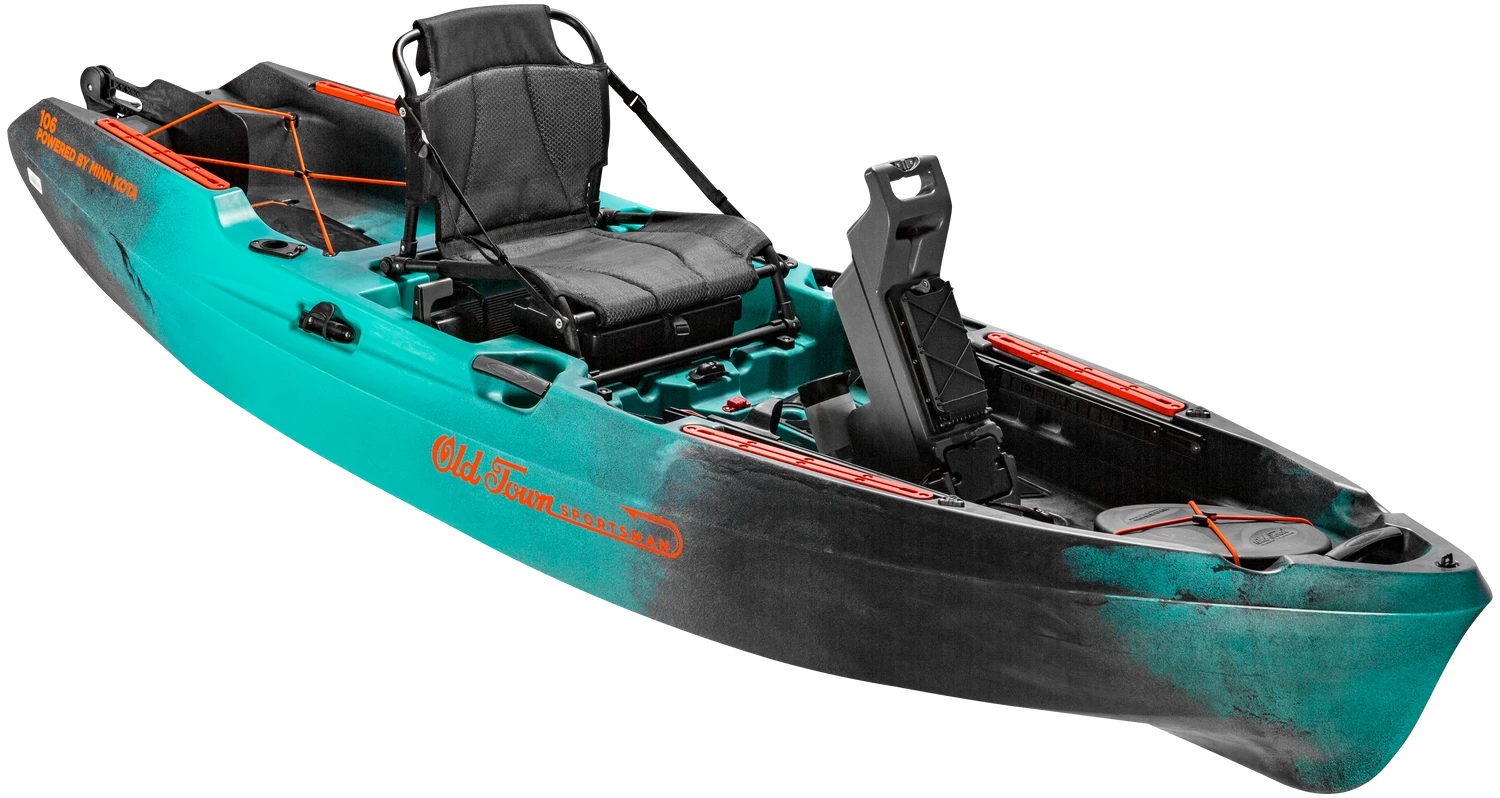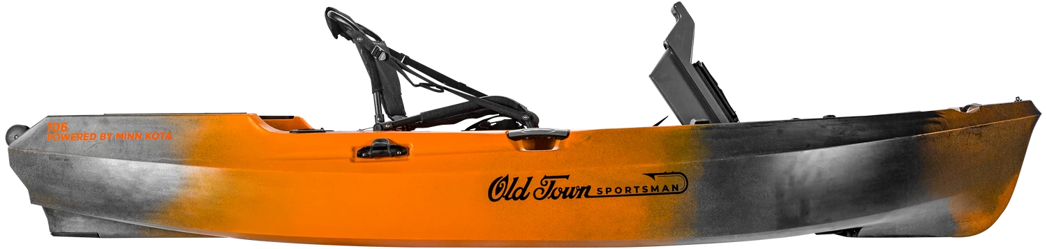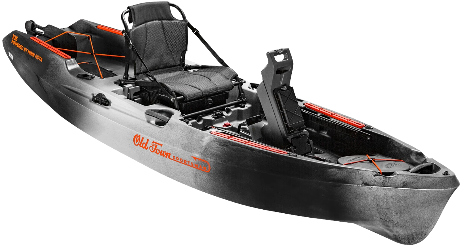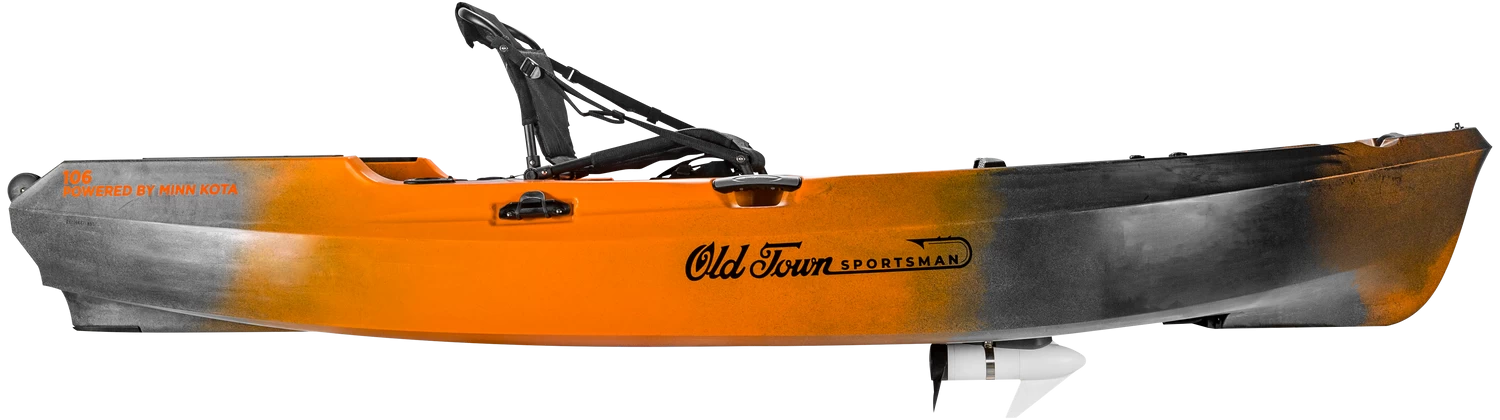 The Old Town Sportsman 106 Powered by Minn Kota motorized kayak is simple and intuitive, getting you on the fish faster in a compact, low-profile kayak you can car top.
