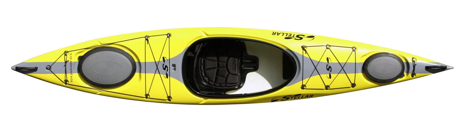 The Stellar 12′ (S12) Recreational Kayak is a great transitional boat. Great primary stability and tracking with efficient hull lines provide confidence and performance to those who paddle it. The over sized cockpit opening make it easy to enter or exit the boat. Water tight bow and stern storage compartments have ample storage for day tripping or overnight tours.