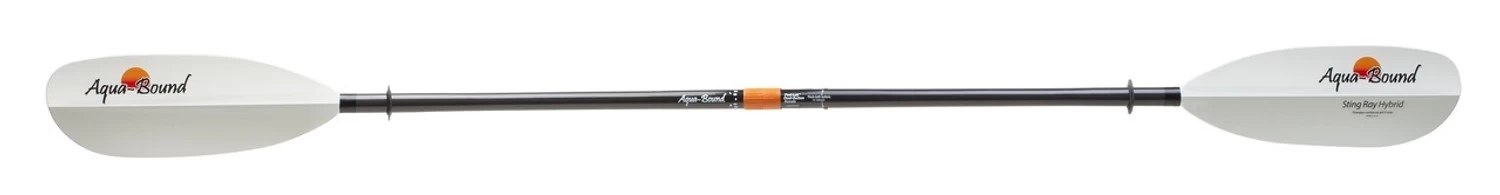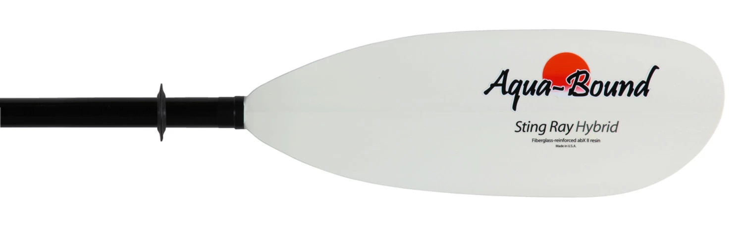 The Sting Ray Hybrid is the lightest injection molded kayak paddle available at its price point. With its mid-sized blades built of exclusive Aqua-Bound abXII resin reinforced with fiberglass and its all-carbon shaft, this paddle reduces fatigue and joint strain for flat-water paddlers. The Sting Ray Hybrid has two ferrule options. In addition to a snug 3-hole snap-button ferrule (0° to 60°, L and R feathering angles), this paddle also offers the Posi-Lok® ferrule system which clicks into position firmly and securely. The Posi-Lok® features strong, corrosion-free composite construction, convenient dual-button release, and infinite feathering angles.