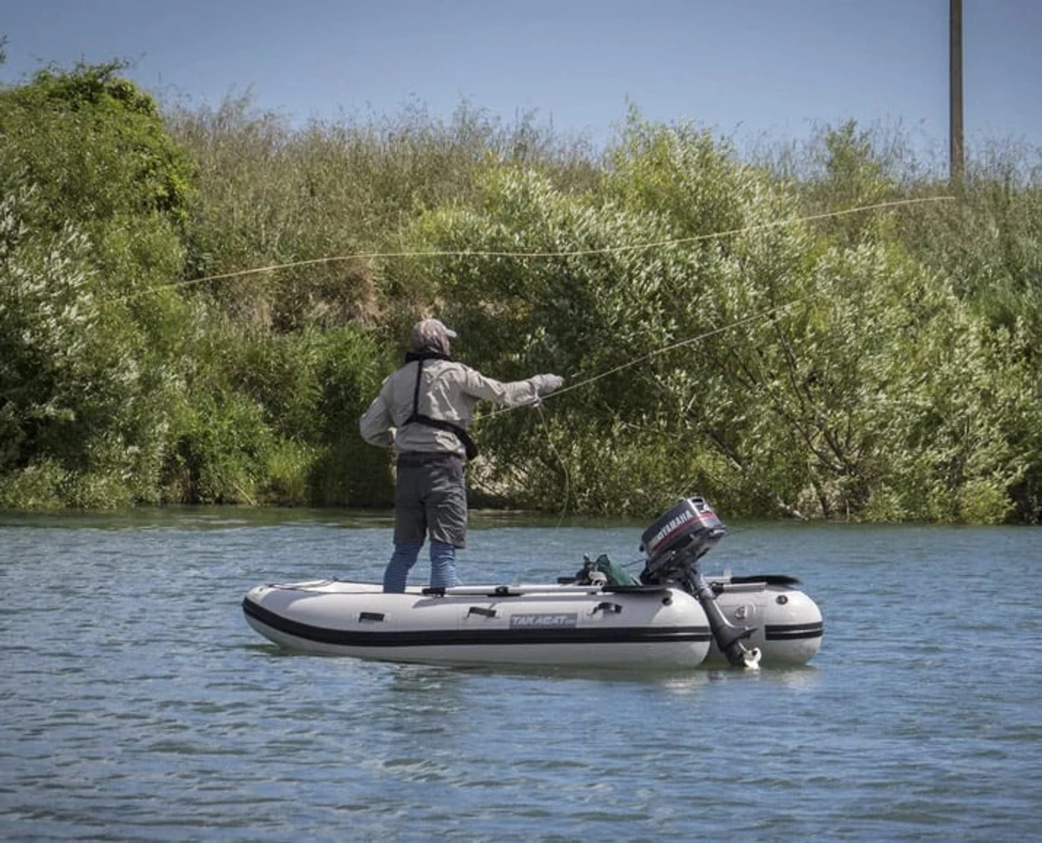 The ideal inflatable boat for fishing and leisure is the Takacat Sport T300LS. This boat is ideal for a day on the lake or a weekend fishing excursion because it has room for gear and up to four people. Because to its catamaran form, which offers outstanding stability, you may fish or unwind comfortably without being concerned about toppling over. Additionally, the T300LS is simple to transport to your preferred fishing location thanks to its lightweight design.