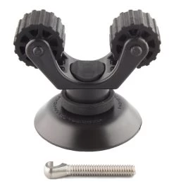 Compatible with standard diameter kayak paddles the RotoGrip Paddle Holder has become the most widely used paddle holder in the industry. The RotoGrip is a simple yet highly effective paddle holder solution, but many paddlers wanted to use one or two RotoGrips on a single side of the kayak. When using two RotoGrips on a single piece of track, you get a nice tight hold, but you also cover up the entire length of the track with your paddle, rendering open track space useless. The DoubleHeader in this configuration eliminates that problem entirely and offsets the paddle holders off the kayak allowing for the full functionality of the remaining track space for other accessories. If you are tight on track space, the DoubleHeader includes an additional feature to add LockNLoad accessories like YakAttack rod holders, camera mounts, and more. Simply replace the stock knob from the DoubleHeader with the LockNLoad base of a rod holder or other accessories, and you are able to have multiple attachments on a short section of track or a single point of attachment like a MightyMount II.